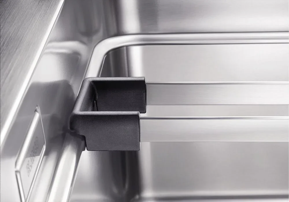 Продуманная система с универсальными направляющими расширяет функциональность. По направляющим можно устанавливать разделочную доску, пластиковый дуршлаг или металлические решетки. Такие аксессуары превращают чашу в рабочую платформу и ускоряют подготовку ингредиентов. Универсальные направляющие повышают эргономику без дополнительных доработок столешницы.