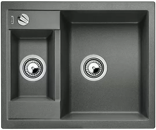 Врезная мойка выглядит аккуратно и стильно. Имеется возможность установки под столешницу, что сделает конструкцию еще более гигиеничной и эффектной. Оборачиваемая конструкция позволяет подстроить расположение чаш под индивидуальные особенности помещения и владельцев. Материал изготовления — искусственный камень Silgranit puradur II, на 80% состоящий из натурального гранита, идеально гладкий, прочный, не изменяющий цвет под действием пищевых красителей. Глубина основной чаши 19 см позволяет мыть посуду большого размера, не опасаясь, что брызги попадут на мебель. Клапан-автомат обеспечивает автоматический отвод воды, что повышает комфорт использования.