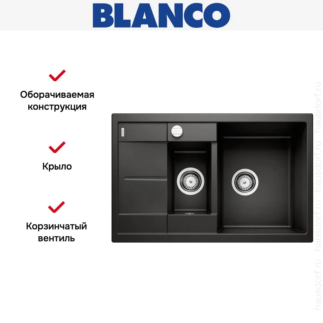 Обратите внимание на дизайнерские отличия мойки Бланко, которые помогут в создании идеальной кухни в вашем доме. Она выполнена в цвете черный. Основной материал — гранит, он гарантирует надежность и долгие годы службы без повреждений. Крыло, расположенное слева или справа, является дополнительным рабочим пространством, на котором можно сушить посуду, разделывать мясо и нарезать овощи.