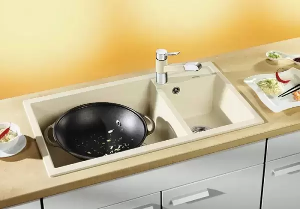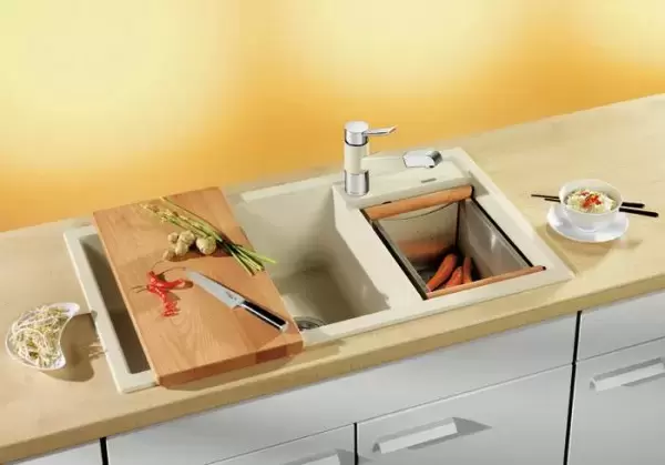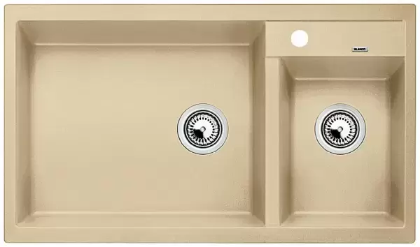 Эффектная кухонная мойка с двумя чашами. Модель из коллекции Blanco Metra подойдет для просторной кухни благодаря ширине 90 см. Универсальный дизайн и прямоугольная форма отлично выглядят в современной или классической кухне. Благодаря скругленным углам в ней не задерживается грязь. Так же универсален набор из 10 цветов — от белого и жасминового до цвета кофе, антрацит и алюметаллик. Мойка оснащена просторной, глубокой основной чашей и функциональной дополнительной чашей для мытья большой посуды или овощей. Широкая площадка позволяет удобно размещать даже несколько дополнительных аксессуаров. Модель изготовлена из запатентованного искусственного камня Silgranit PuraDur II, идеально гладкого и гигиеничного. Материал отличается высокой прочностью, поэтому появление царапин и повреждений исключено. Грязеотталкивающее покрытие гарантирует простоту в уходе. Имеется корзинчатый вентиль, который выполняет фильтрующую функцию, задерживая крупные частицы и не допуская их попадания в канализационную систему. Корзина вентиля легко извлекается, что позволяет без затруднений удалить оставшийся на ней мусор. Возможна установка клапана-автомата с отводной арматурой, который сливает воду путем нажатия кнопки на бортике, так что не нужно пачкать руки. Дополнительно можно приобрести разделочные доски, коландеры и решетки на раковину. Модель допускает установку под столешницу для более удобной очистки.