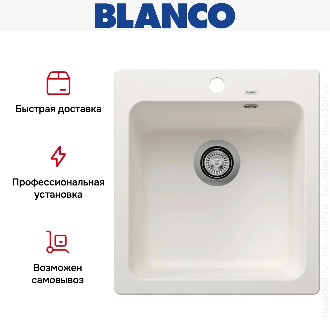 Мойка Blanco Naya 45 — накладная прямоугольная модель в белом цвете, созданная для компактных кухонь и современных интерьеров. Ее аккуратные габариты 46.5×51 см делают изделие удобным решением для узких столешниц и баз шириной 45 см. Установка над столешницей с бортиком упрощает монтаж и обеспечивает дополнительную защиту от подтеков в местах стыка.