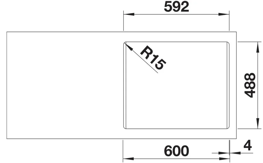 Размеры 61,5×51 см делают модель удобной для небольшой кухни и для тех, кто ценит порядок на столешнице. Надстраиваемая установка упрощает монтаж и обслуживание, поскольку край опирается на столешницу и не требует сложных подкреплений. Ширина базы 60 см и точные размеры монтажного отверстия 59,2×48,8 см позволяют заранее подготовить модуль для быстрого встраивания. Радиус скругления 1,5 см облегчает резку и гарантирует аккуратный стык с рабочей поверхностью.