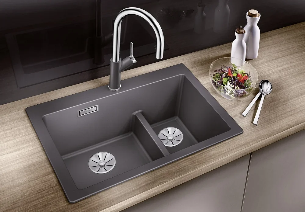 Накладная мойка Blanco — отличный выбор для тех, кто хочет создать гармоничное пространство с удобной сантехникой. простой в установке. Преимущество такой конструкции: легко подобрать практически к любой кухне и не придется демонтировать вместе с тумбой при ремонте или перестановке остальной мебели. Данная модель имеет стандартную форму, поэтому подходит большинству пользователей. Устанавливается над столешницей: это самый простой способ монтажа, зачастую с ним можно справиться даже без специалистов, главное — правильно рассчитать размеры ниши.
