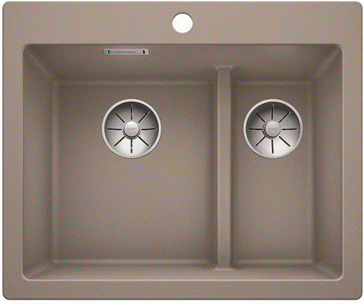 Элегантная мойка Blanco с двумя эргономичными чашами. Гигиеничный перелив C-overflow® и новая отводная арматура InFino™ с двумя корзинчатыми вентилями обеспечивают комфорт в эксплуатации.