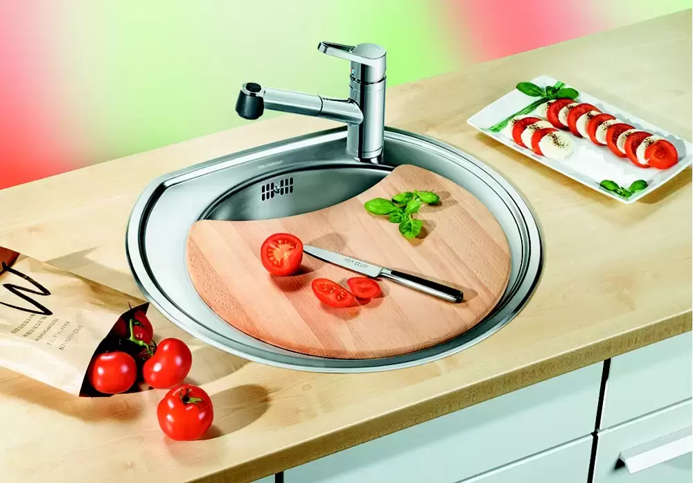 Мойка Blanco RONDOVAL придает кухне индивидуальный характер и подходит для любого дизайна интерьера. Изделие из ударопрочной и устойчивой к любым воздействиям нержавеющей стали толщиной 0,6 мм имеет официальную гарантию производителя сроком на 60 месяцев. Устанавливается над столешницей врезным методом. Закругление между дном и боковыми стенками облегчает чистку раковины. Отверстие для смесителя расположено справа для удобства пользователя. Глубокая чаша позволяет с комфортом мыть высокие предметы. Стенки защищают столешницу от попадания брызг. Практичную площадку под смеситель можно использовать для размещения аксессуаров, моющих средств и других кухонных принадлежностей. Благодаря компактным размерам подходит для небольших кухонь. Модель исполнена в трех вариантах — нержавеющая сталь матовая, нержавеющая сталь полированная и декор. В комплект входит отводная арматура с корзинчатым вентилем для предотвращения засора труб. Имеется возможность приобретения сопутствующих аксессуаров — круглой разделочной доски, коландера, накладки на слив.