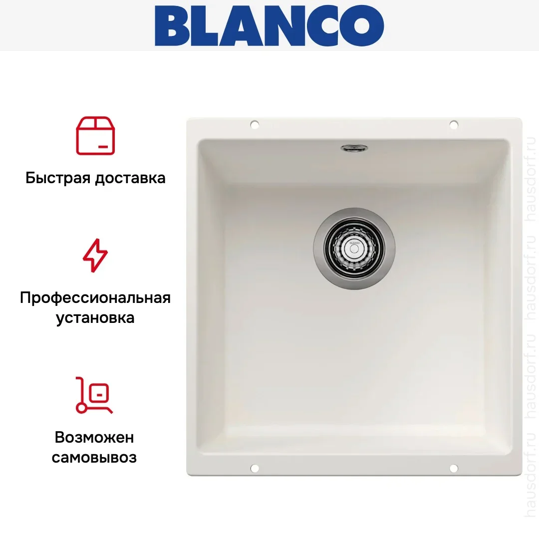 Мойка Blanco Rotan 400 U Silgranit белый. Этот врезной прямоугольный вариант сочетает строгие линии и мягкую фактуру, делая рабочую зону аккуратной и современной. Габариты 43×46 см обеспечивают компактность, но не урезают функционал, поэтому модель удобно вписывается в небольшие кухонные гарнитуры. Установка под столешницу создает единую поверхность и облегчает уборку крошек и жидкости.