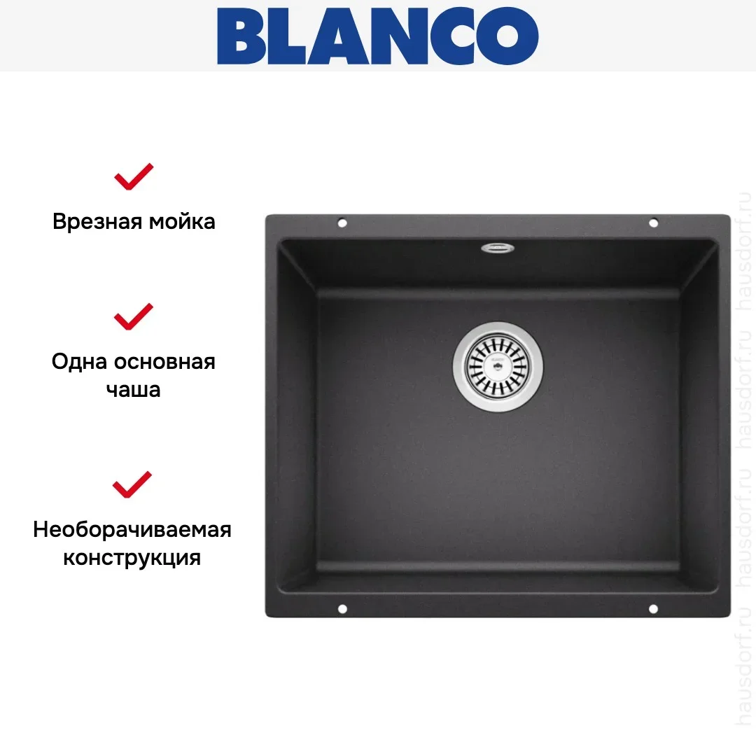 Врезная мойка Blanco — отличный выбор для тех, кто хочет создать гармоничное кухонное пространство с полностью вписывающейся в него сантехникой. Преимущество такой конструкции — плотное прилегание к столешнице, так как вырез подбирается индивидуально под габариты модели. Под стыки не попадает вода, поэтому срок службы значительно увеличивается, пользоваться ей удобно и приятно. Данная модель имеет стандартную форму, поэтому подходит большинству пользователей. Устанавливается под столешницу, благодаря чему не остается стыков, в которых копились бы загрязнения, а также увеличивается рабочая глубина.