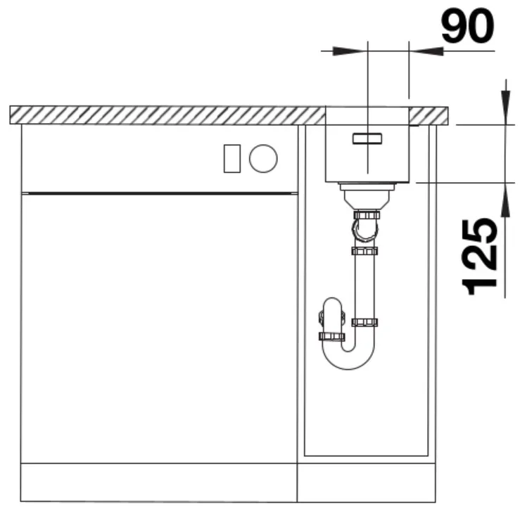Эту модель можно установить только в одном положении — подходит для гарнитура с фиксированным местом смесителя. Для корректного размещения вам понадобится база шириной 30 см.