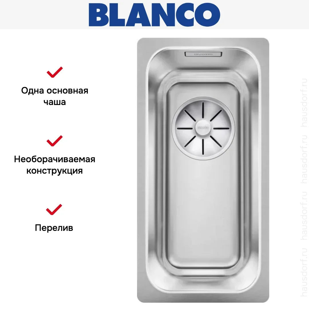Обратите внимание на дизайнерские отличия мойки Бланко, которые помогут в создании идеальной кухни в вашем доме. Она выполнена в цвете нержавеющая сталь. Основной материал — нержавеющая сталь, он гарантирует надежность и долгие годы службы без повреждений. У этого покрытия приятная матовая текстура.