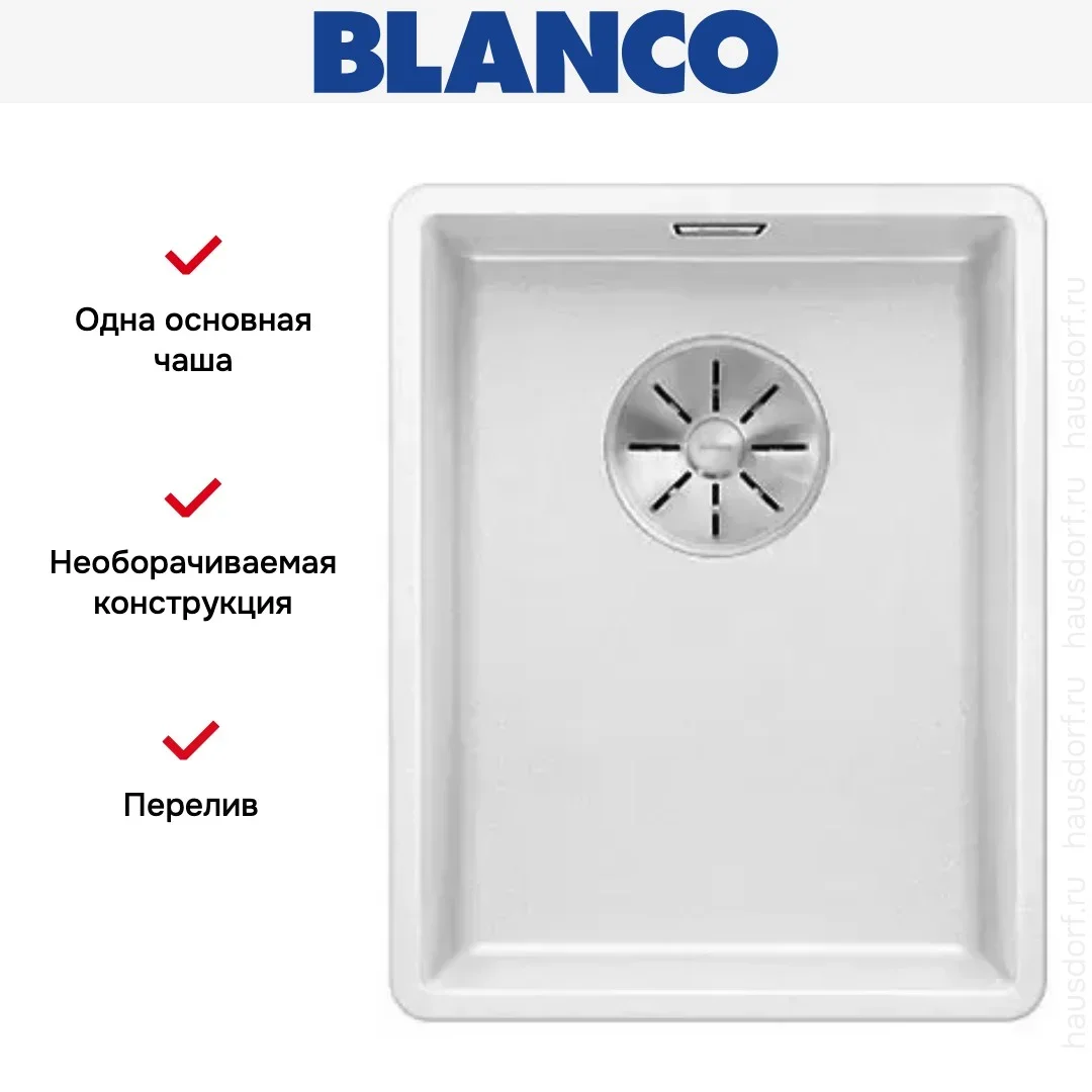 Мойка Blanco SUBLINE 320-F отводная арматура InFino® белый