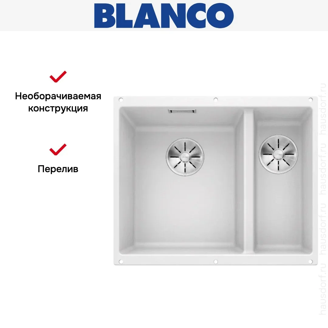 Обратите внимание на дизайнерские отличия мойки Бланко, которые помогут в создании идеальной кухни в вашем доме. Она выполнена в цвете белый. Основной материал — Silgranit, он гарантирует надежность и долгие годы службы без повреждений.