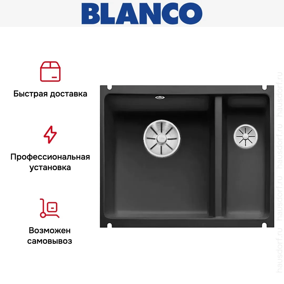 Мойка Blanco SUBLINE 350/150-U керамика отводная арматура InFino® черный