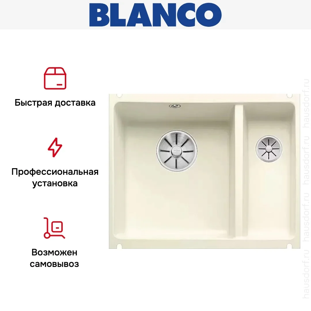 Blanco SUBLINE 350/150-U — керамическая мойка с двумя разноразмерными чашами. Модель предназначена для монтажа под столешницу, толщина которой должна составлять не менее 25 мм. Во избежание затопления предусмотрен практичный перелив.
