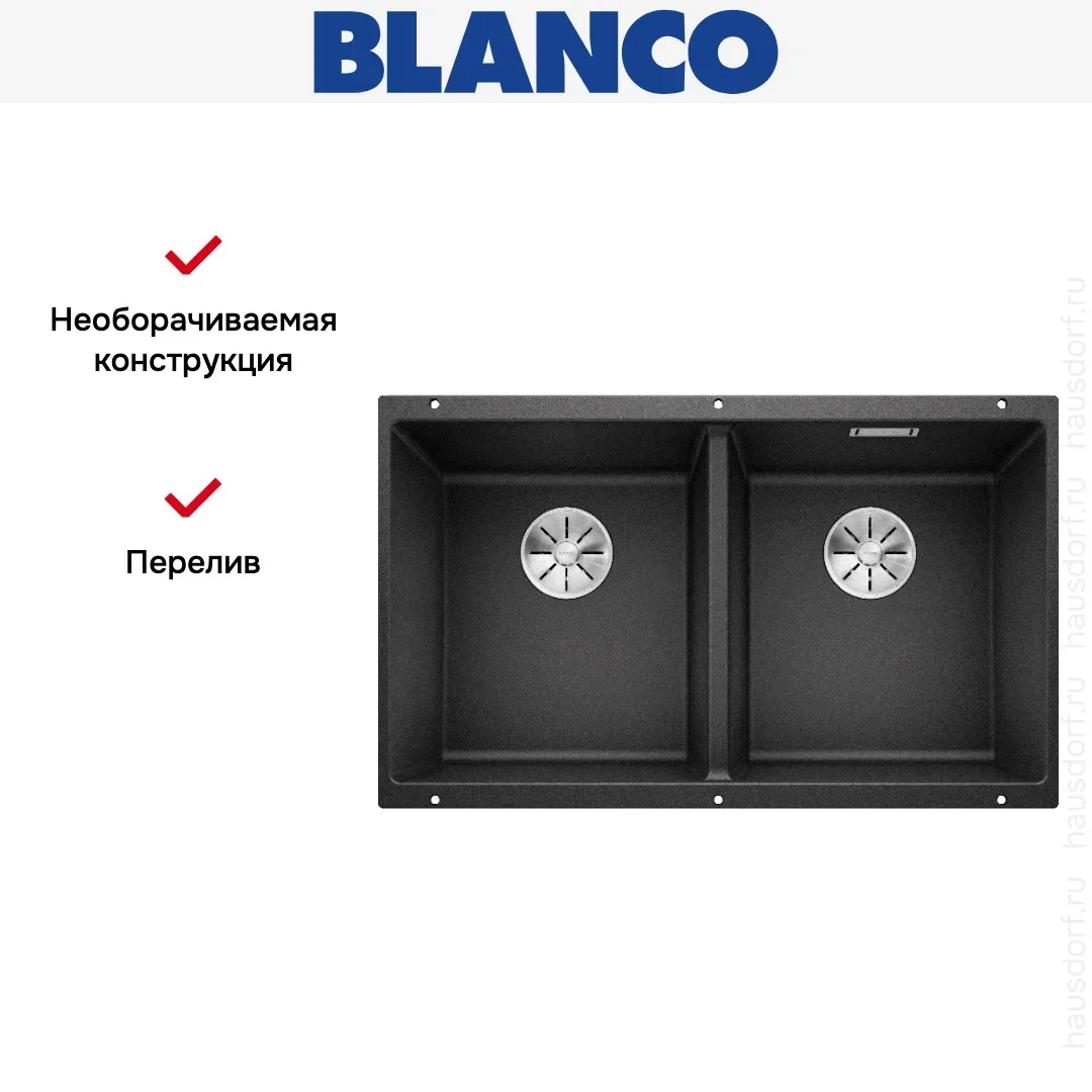 Мойка Blanco Subline 350/350-U Silgranit антрацит. Эта врезная прямоугольная раковина сочетает строгую геометрию и мягкую фактуру поверхности. Цвет антрацит придаёт интерьеру глубину и легко сочетается с металлическими и деревянными фасадами. Материал Silgranit обеспечивает матовый оттенок и приятное на ощупь покрытие, которое не боится ежедневных нагрузок. Покрытие устойчиво к царапинам и потемнению от красящих продуктов, поэтому внешний вид надолго остаётся аккуратным.