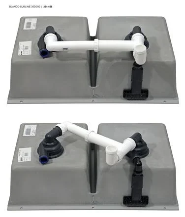 Двойная компоновка чаш даёт удобство при организации рабочих задач. Основных две чаши размером 35×40 см и глубиной 20 см каждая — этого достаточно для мытья сковород и подготовки продуктов. Невысокий радиус внутреннего скругления облегчает очистку углов и одновременно сохраняет строже геометрию. Стандартный диаметр сливного отверстия 3,5 дюйма совместим с большинством систем слива и измельчителей пищевых отходов.