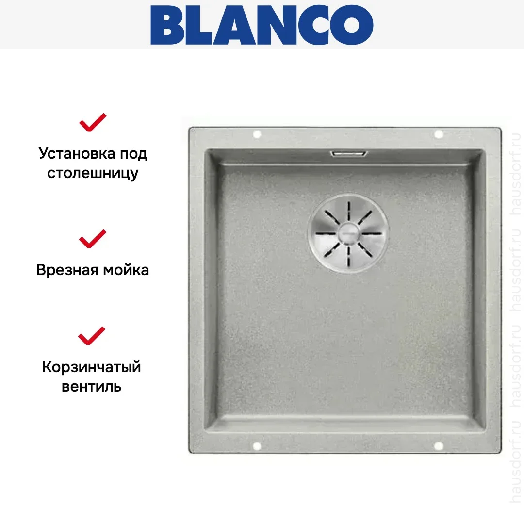 Мойка Blanco SUBLINE 400-U SILGRANIT отводная арматура InFino® алюметаллик