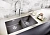 Основная чаша 48×40 см и дополнительная 32×40 см, обе глубиной 20 см, позволяют одновременно мыть крупную посуду и обслуживать подготовительные операции. Глубина уменьшает разбрызгивание и дает больше рабочего пространства под краном. Наличие скрытого перелива C-overflow предотвращает затопление и делает дизайн аккуратным. Диаметр сливного отверстия 3,5″ совместим с корзинчатым вентилем, а система слива InFino обеспечивает компактный, чистый и легкодоступный трап.
