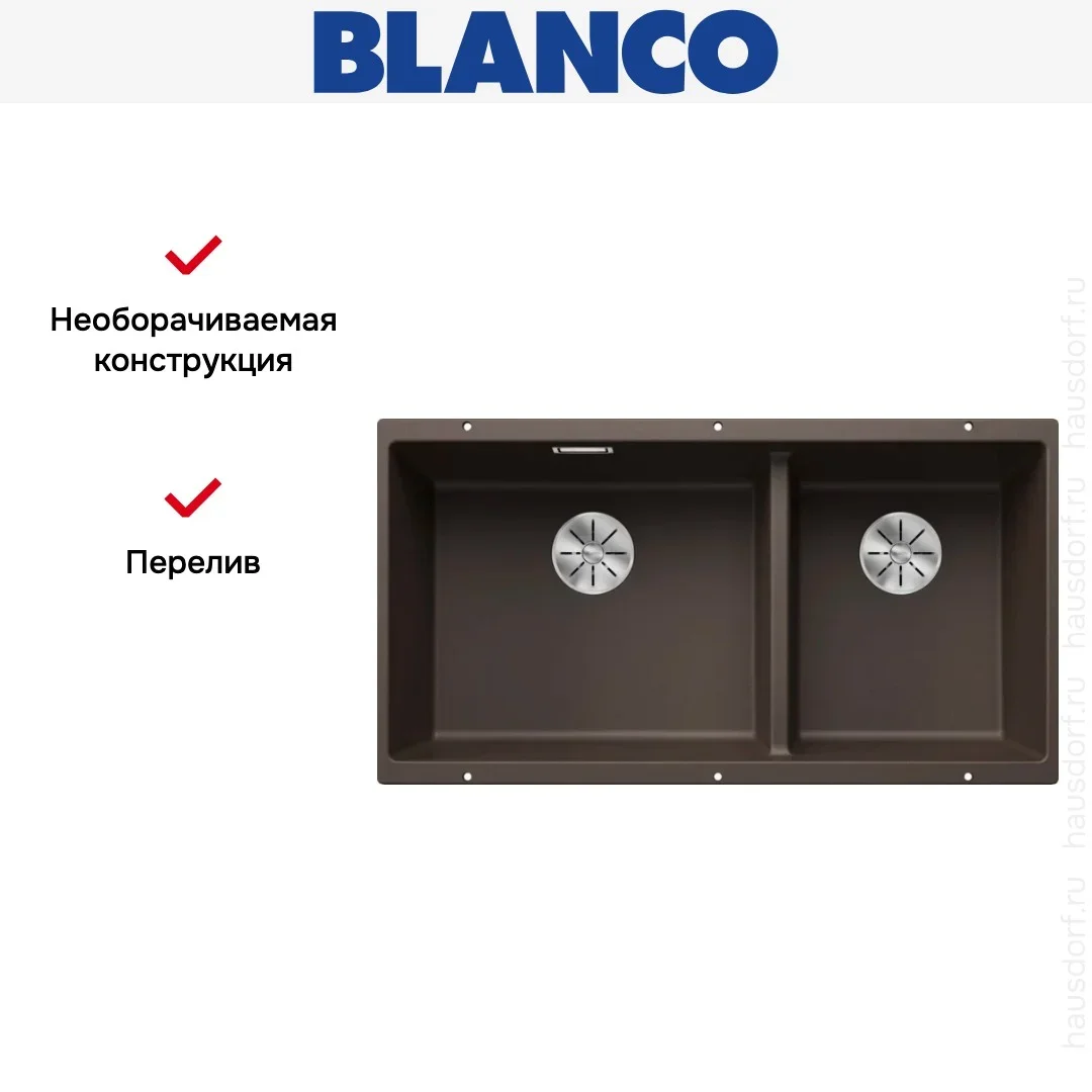 Мойка Blanco Subline 480-320 U Silgranit Кофе представлена в элегантном прямоугольном исполнении с глубоким кофейным оттенком, который придаёт кухне тёплую и современную атмосферу. Дизайн подчёркнут минималистичными линиями и аккуратными радиусами, что делает модель идеальной для интеграции в столешницы из натурального камня или дерева. Нейтральный тёплый тон хорошо сочетается с матовыми и глянцевыми фасадами, создавая визуальный контраст и уют в рабочей зоне. Первое впечатление от поверхности — солидность и устойчивость цвета, что особенно важно в открытых кухнях и при сочетании с декором.