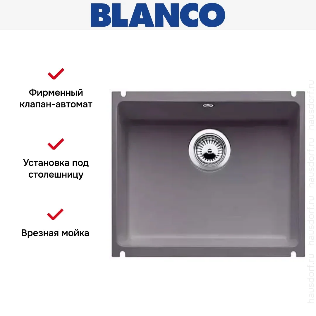 Керамическая мойка Blanco Subline 500-U проста в обслуживании благодаря поверхности PuraPlus. Врезной монтаж подходит для столешниц из стекла, натурального и искусственного камня. Максимальный комфорт эксплуатации и высокое качество материала отличают мойки линии Subline. Способ установки «под столешницу» считается самым гигиеничным и простым в уходе благодаря отсутствию стыков. Клапан-автомат открывает слив нажатием кнопки, позволяя не опускать руки в воду. Глубина чаши 20 см подойдет для мытья посуды большого размера. Разнообразие цветовых решений облегчает подбор модели для вашей кухни. В комплект входит отводная арматура и набор крепежа.