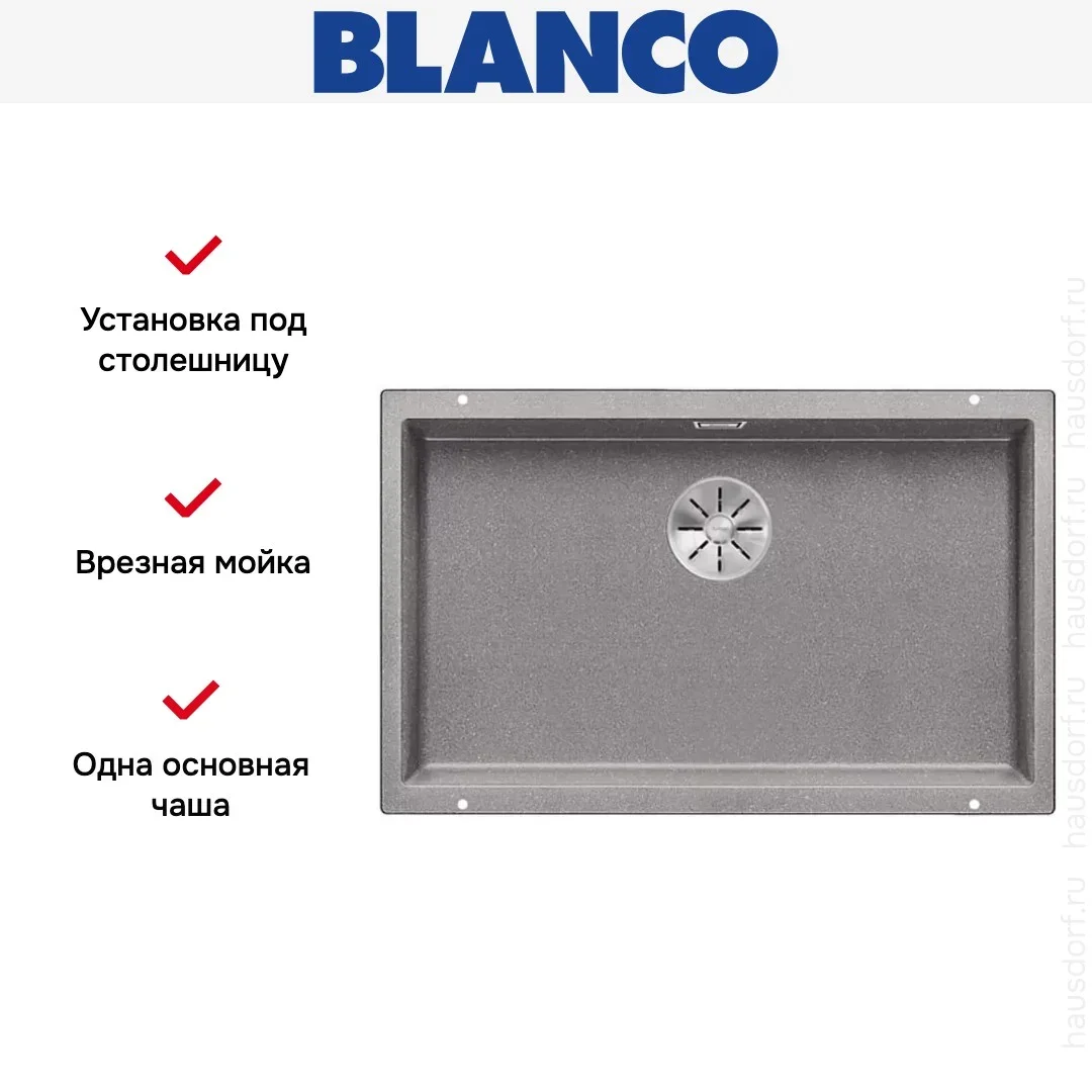 Мойка Blanco SUBLINE 700-U SILGRANIT отводная арматура InFino® алюметаллик