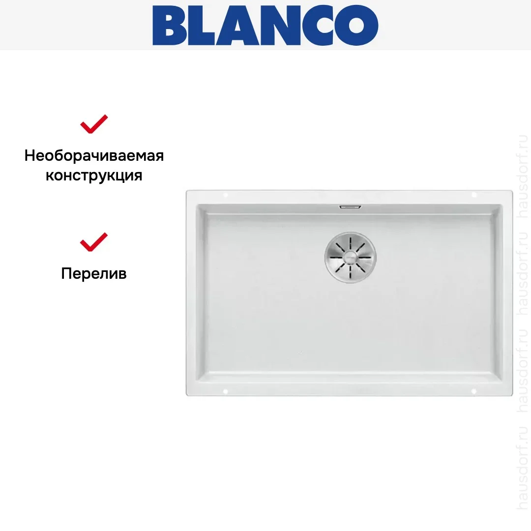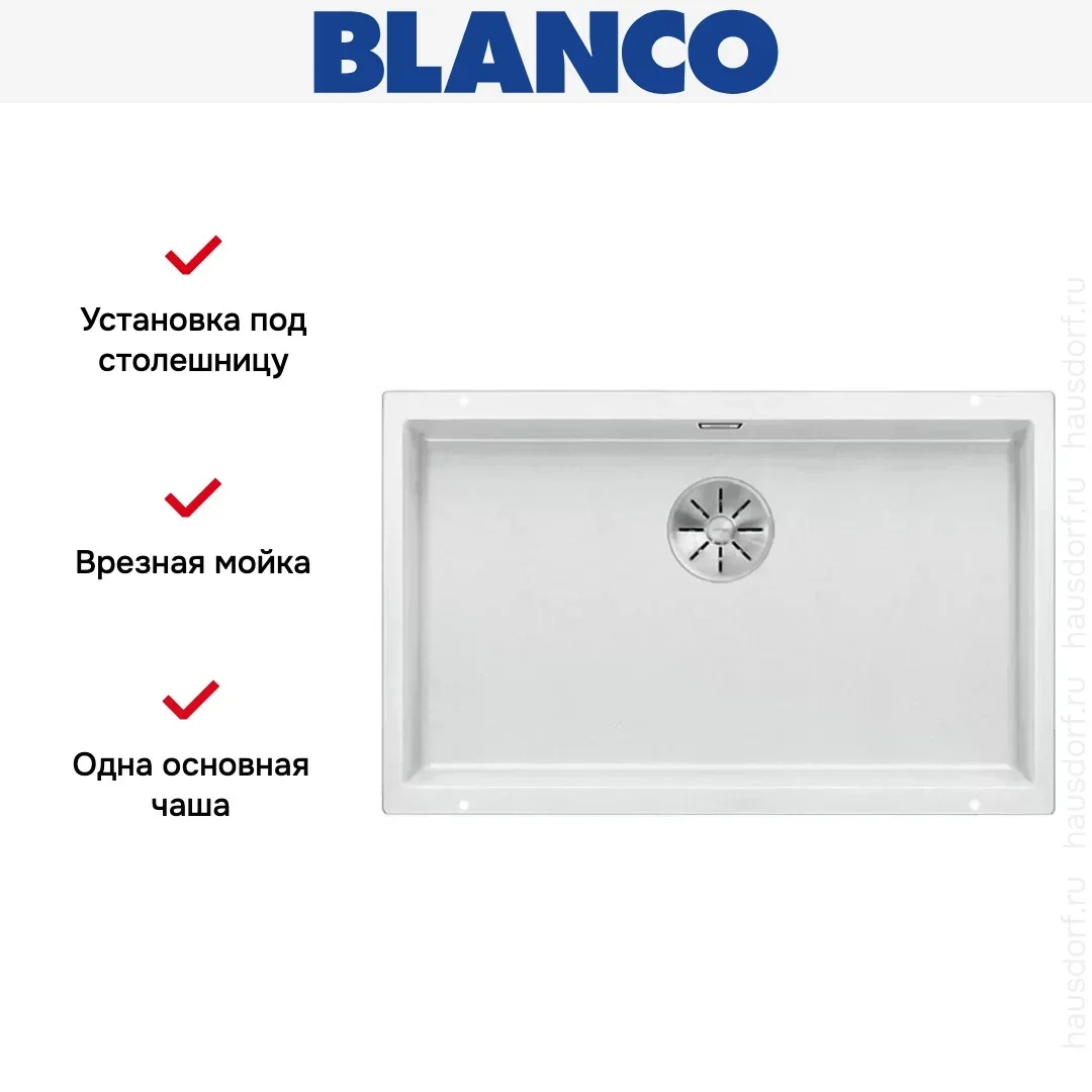 Мойка Blanco SUBLINE 700-U SILGRANIT отводная арматура InFino® белый