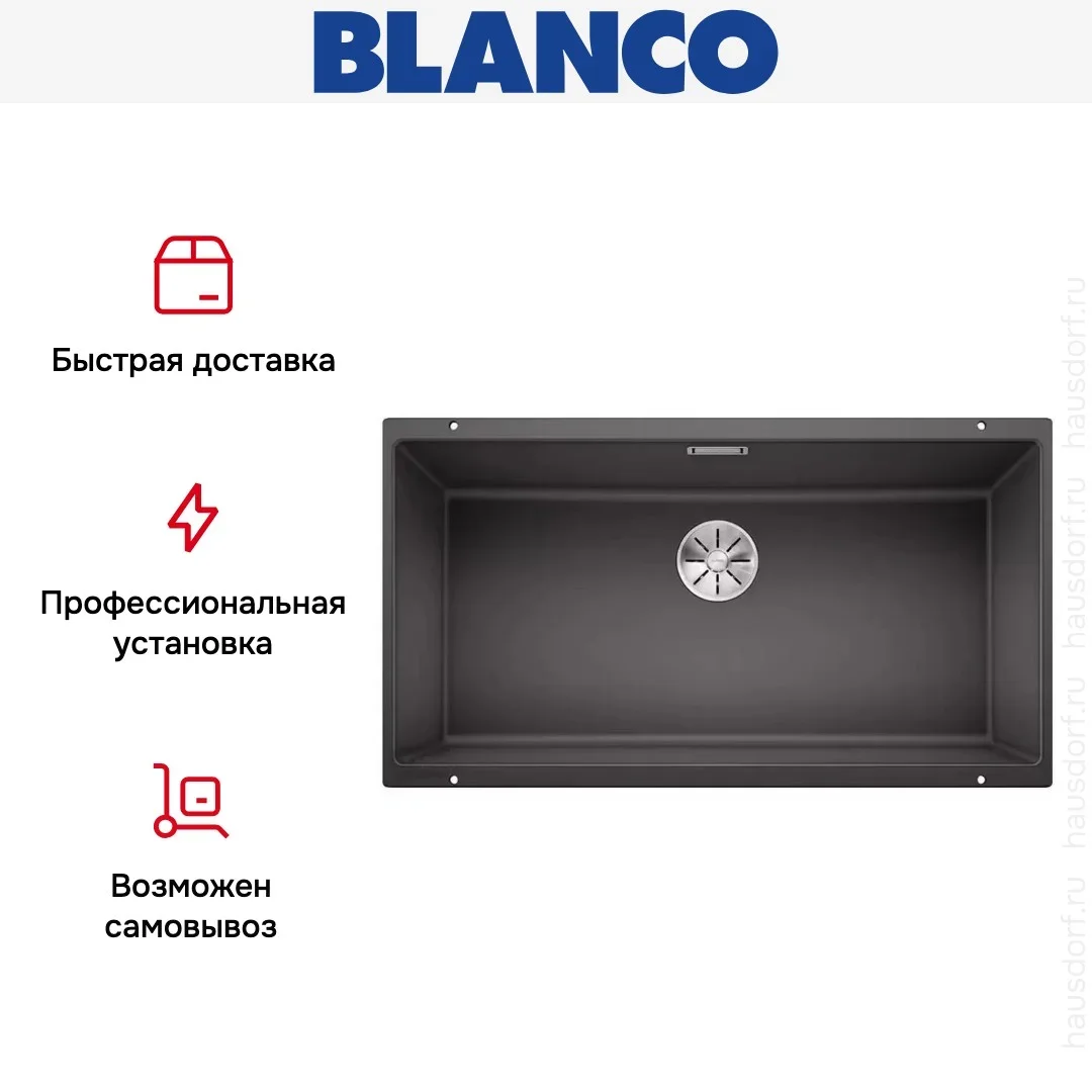 Мойка Blanco SUBLINE 800-U отводная арматура InFino® темная скала