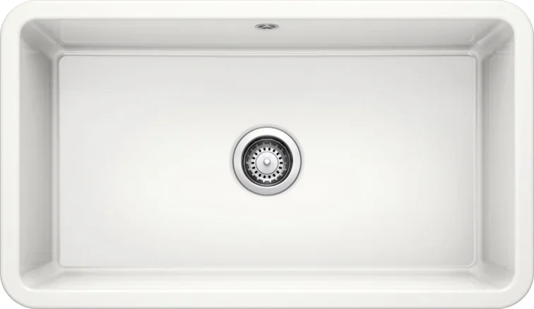 Обратите внимание на дизайнерские отличия мойки Бланко, которые помогут в создании идеальной кухни в вашем доме. Она выполнена в цвете глянцевый белый. Основной материал — керамика, за ней нужно тщательно и бережно ухаживать, зато такое исполнение добавляет интерьеру изящества.