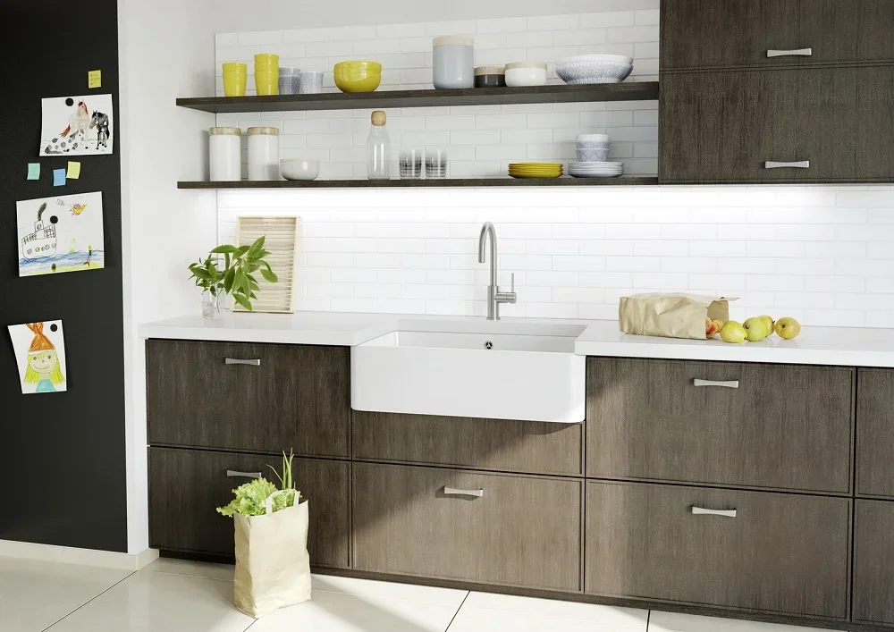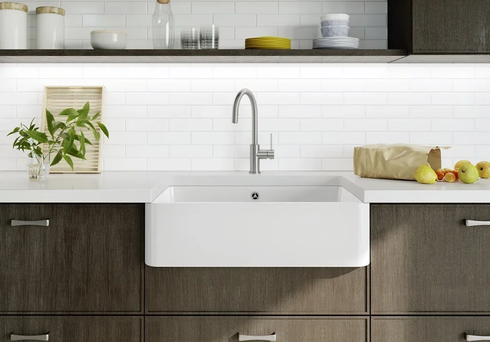 Эту модель можно установить только в одном положении — подходит для гарнитура с фиксированным местом смесителя. Для корректного размещения вам понадобится база шириной 80 см.