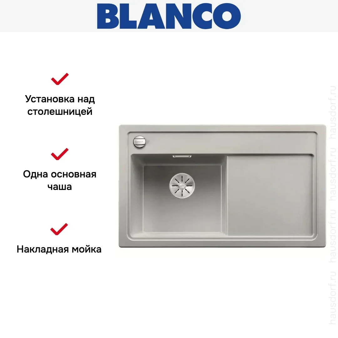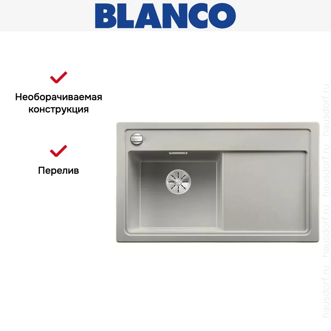 Мойка Blanco ZENAR 45S чаша слева клапан-автомат InFino жемчужный