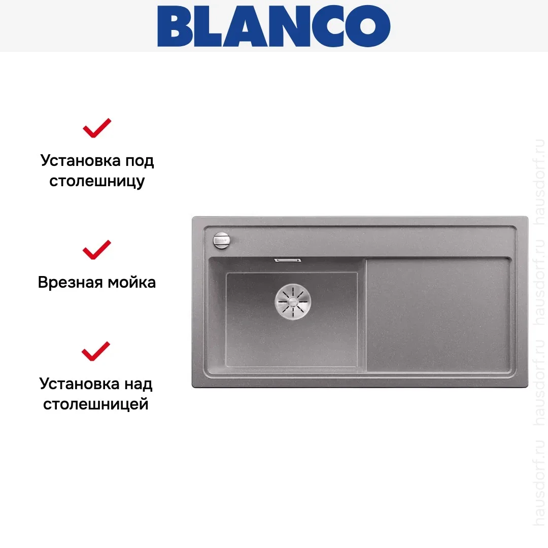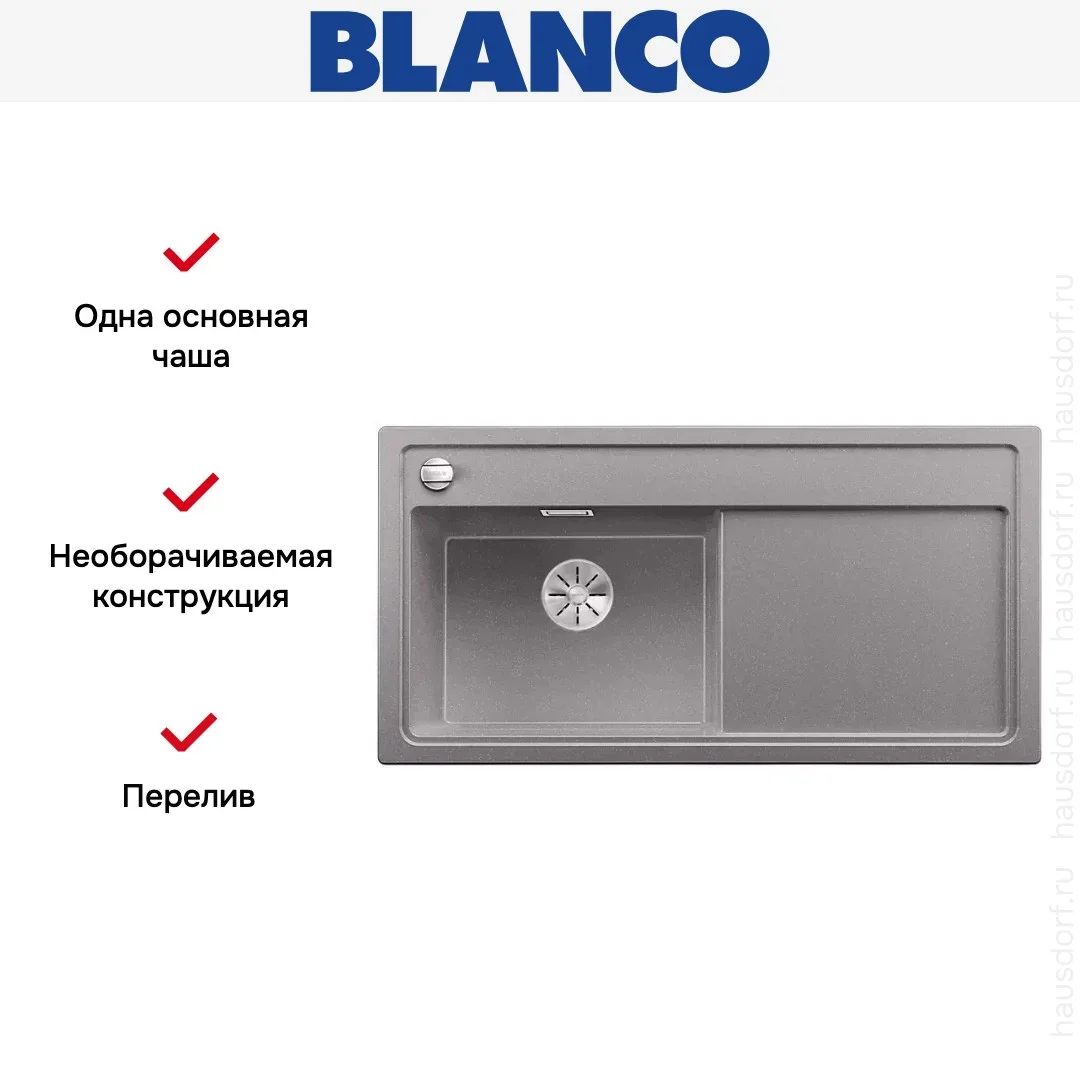 Мойка Blanco ZENAR XL 6 S чаша слева, доска стекло клапан-автомат InFino® алюметаллик