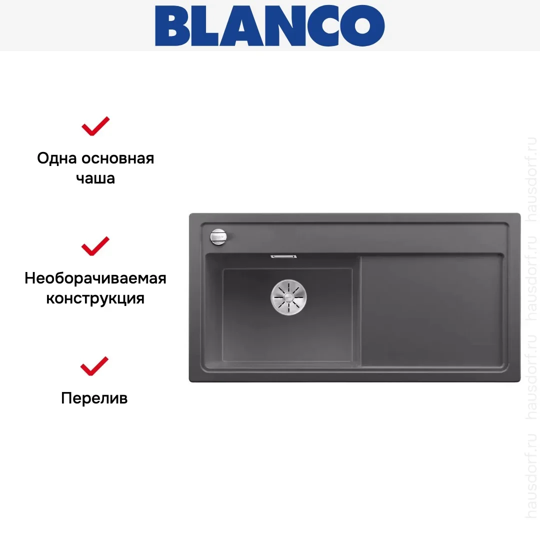 Мойка Blanco ZENAR XL 6 S чаша слева, доска стекло клапан-автомат InFino® темная скала