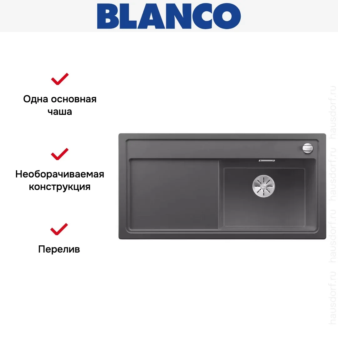 Мойка Blanco ZENAR XL 6 S чаша справа, доска стекло клапан-автомат InFino® темная скала
