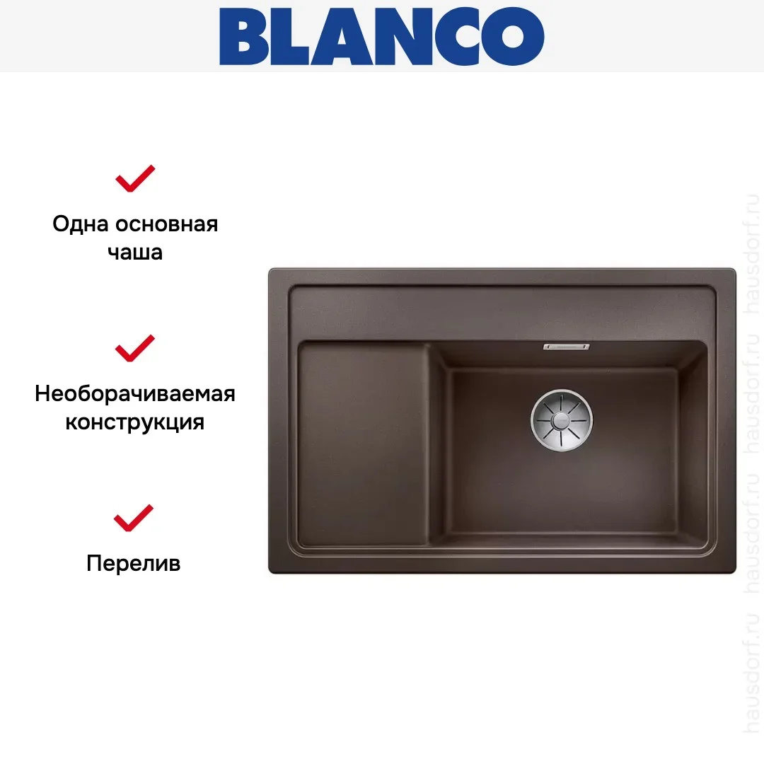 Мойка Blanco ZENAR XL 6 S Compact чаша справа, доска стекло клапан-автомат InFino® кофе