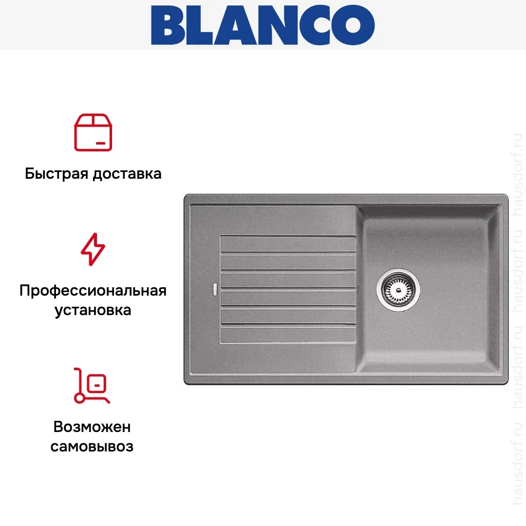 Blanco Zia 5 S — гранитная мойка оборачиваемой конструкции. Модель укомплектована отводной арматурой с корзинчатым вентилем, обеспечивающим защиту от образования засоров.