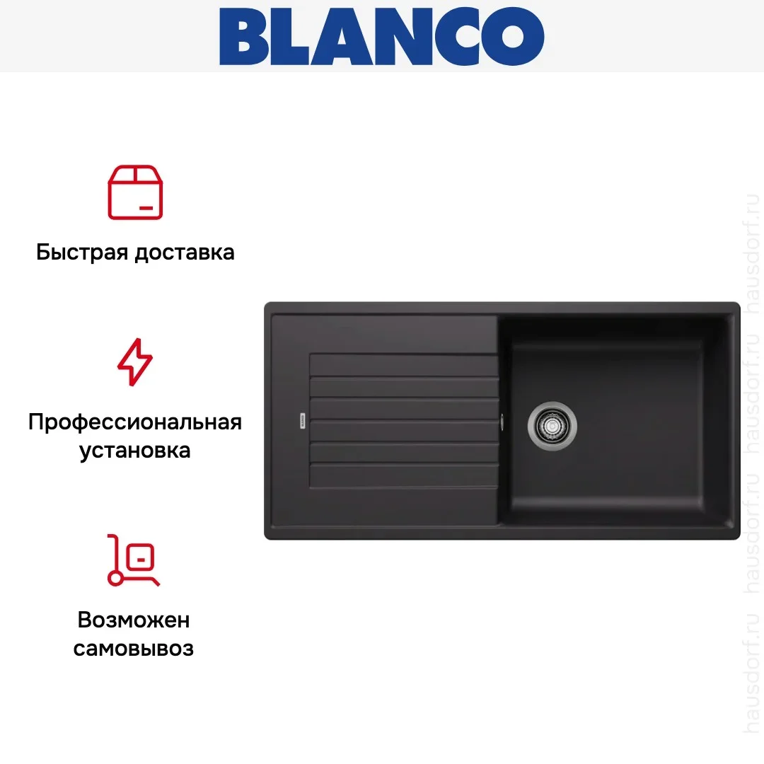 Обратите внимание на дизайнерские отличия мойки Бланко, которые помогут в создании идеальной кухни в вашем доме. Она выполнена в цвете черный. Основной материал — Silgranit, он гарантирует надежность и долгие годы службы без повреждений. Крыло, расположенное слева или справа, является дополнительным рабочим пространством, на котором можно сушить посуду, разделывать мясо и нарезать овощи.