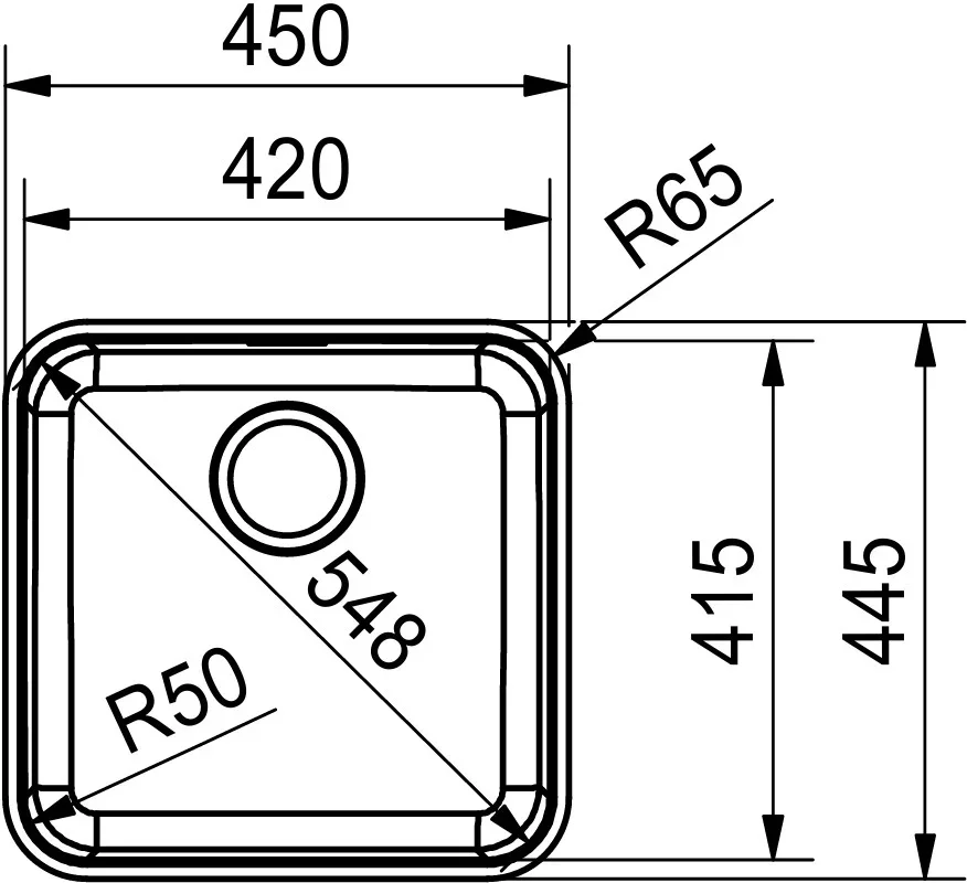 Особое внимание уделено деталям: внутренняя чаша имеет радиус скругления 5 см, а внешние кромки — 6,5 см. Эти мягкие плавные изгибы придают изделию изысканный вид и значительно упрощают очистку, исключая скопление загрязнений в углах. Модель изготовлена из высококачественной нержавеющей стали, устойчивой к коррозии, царапинам и перепадам температур. Матовая поверхность сохраняет эстетичный вид даже при интенсивной эксплуатации, эффективно маскируя мелкие следы и отпечатки.