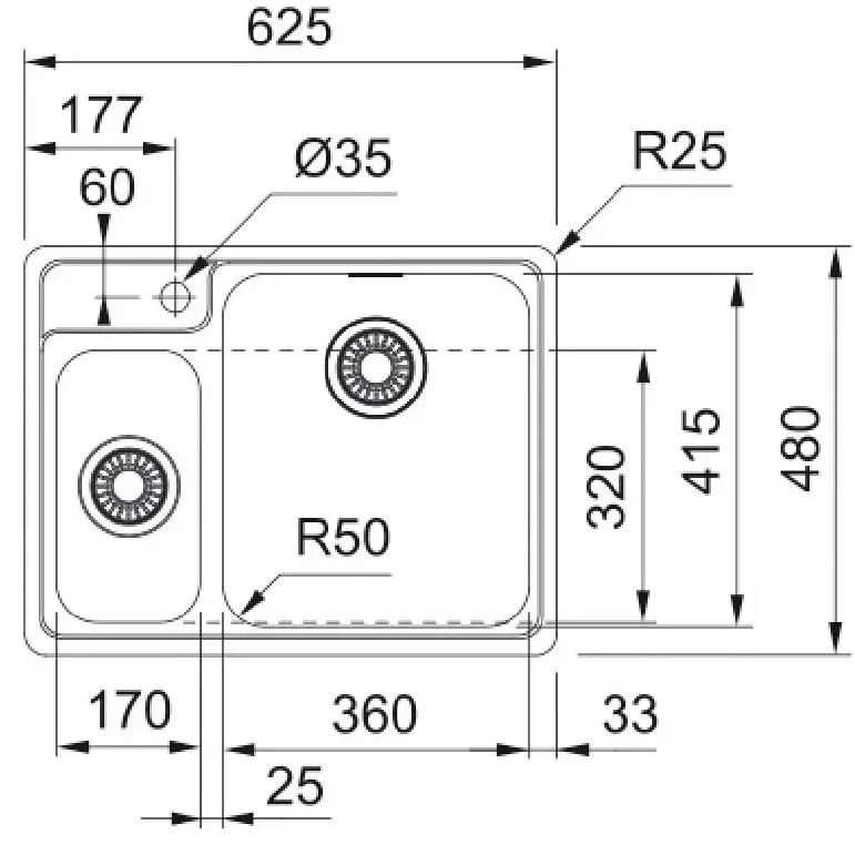 Особенностью модели является мягкий радиус скругления внутренней чаши — 2,5 см, что не только придаёт изделию утончённый вид, но и значительно упрощает уход, исключая скопление грязи в углах. Мойка изготовлена из высококачественной нержавеющей стали и отличается высокой устойчивостью к коррозии, механическим повреждениям и перепадам температур. Матовая текстура поверхности сохраняет эстетичный вид даже при интенсивной эксплуатации, маскируя мелкие царапины и отпечатки.