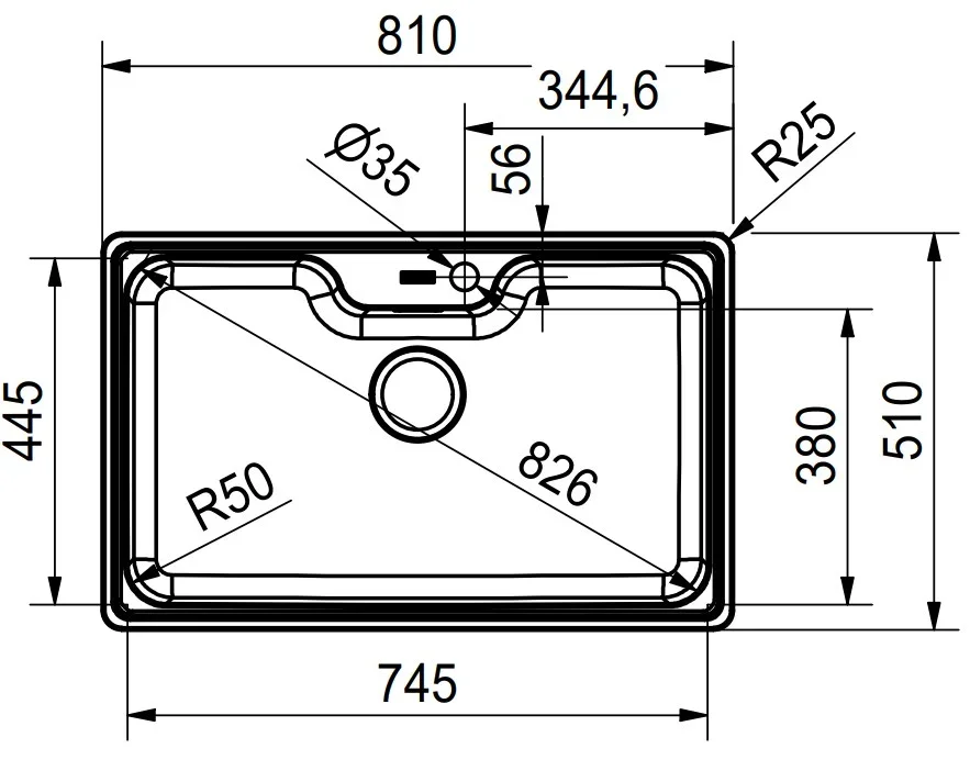 Особое внимание уделено деталям: внутренняя чаша имеет радиус скругления 5 см, а внешние кромки — 2,5 см. Эти плавные изгибы придают изделию утончённый вид и значительно облегчают уход, исключая скопление грязи в углах. Модель изготовлена из высококачественной нержавеющей стали и отличается прочностью, устойчивостью к коррозии, царапинам и перепадам температур. Матовая поверхность сохраняет эстетичный вид даже при интенсивной эксплуатации, эффективно маскируя мелкие следы и отпечатки.