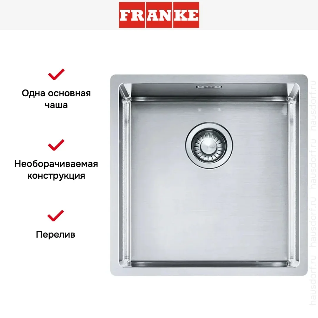 Мойка Franke BXX 210-40 из стали — изящная и функциональная модель, созданная для современных интерьеров с акцентом на чистые линии и практичность. Эта встраиваемая конструкция имеет прямоугольную форму и компактные размеры 41×20 см, что делает её идеальной для небольших кухонных зон или вспомогательных рабочих поверхностей. Установка вровень со столешницей обеспечивает плавный переход между мойкой и плоскостью, формируя единое визуальное полотно и упрощая уход за зоной приготовления пищи.
