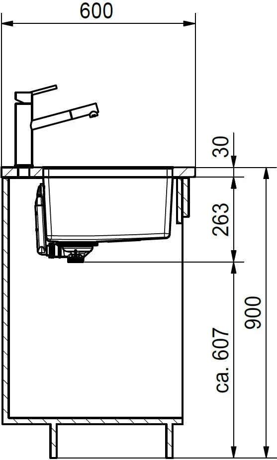 Особенностью конструкции являются минимальные радиусы скруглений: внутренняя чаша имеет закругление радиусом 1,6 см, а внешние кромки — 1 см. Такой подход придаёт изделию чёткие геометрические формы и лаконичный вид, подчёркивая современный характер дизайна, при этом сохраняя удобство очистки. Мойка изготовлена из высококачественной нержавеющей стали, устойчивой к коррозии, механическим повреждениям и перепадам температур. Матовая поверхность сохраняет презентабельный вид даже при регулярной эксплуатации, эффективно маскируя мелкие царапины и отпечатки.