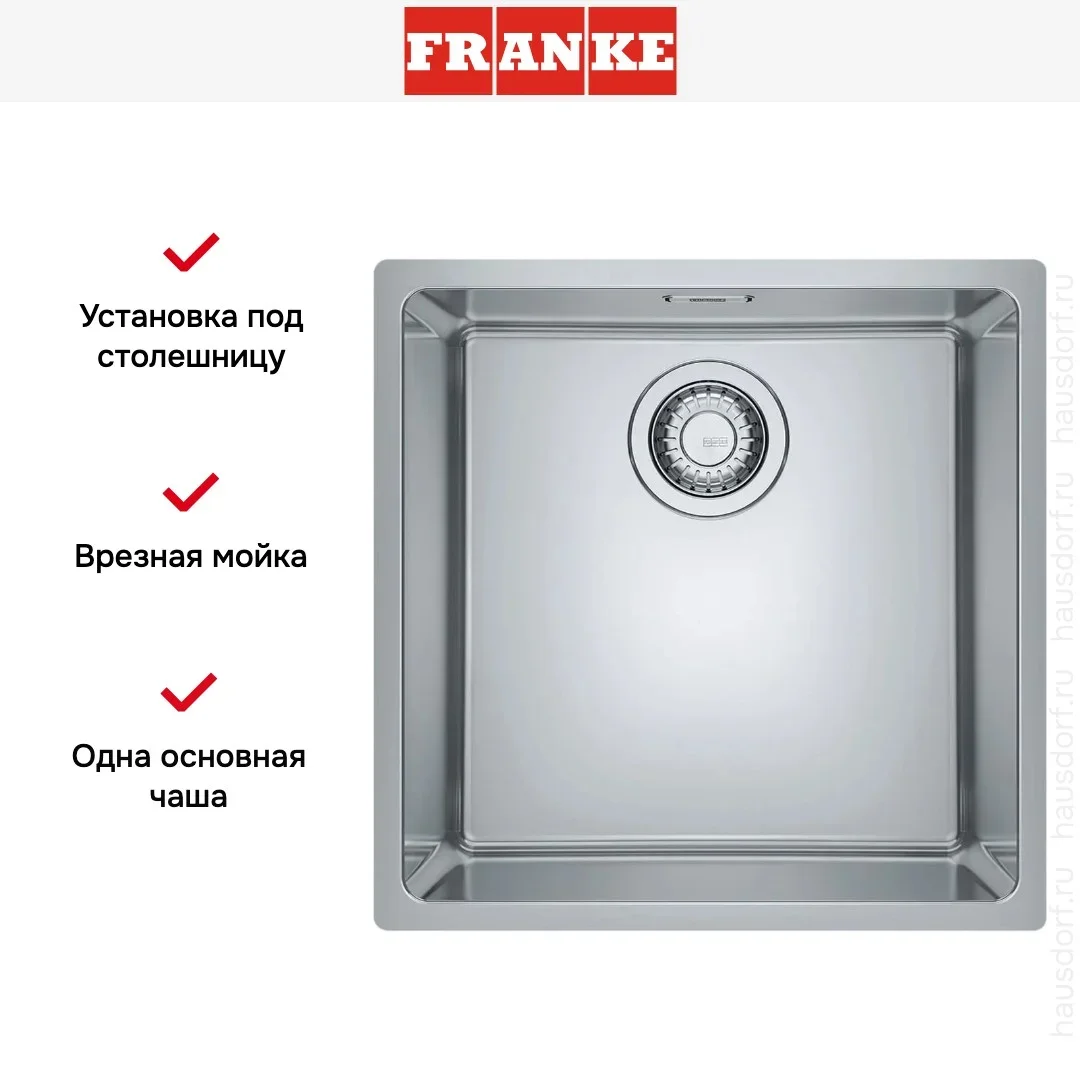 Мойка Franke FEX 110-40 из стали — компактная и стильная встраиваемая модель квадратной формы, идеально сочетающая в себе функциональность и эстетику в условиях ограниченного пространства. Её размеры 44×44 см обеспечивают симметричную и вместительную чашу, глубина которой также составляет 44 см, что гарантирует удобство при мытье посуды и эффективно предотвращает разбрызгивание воды. Такие пропорции делают изделие особенно подходящим для небольших кухонь, барных зон или вспомогательных рабочих поверхностей.