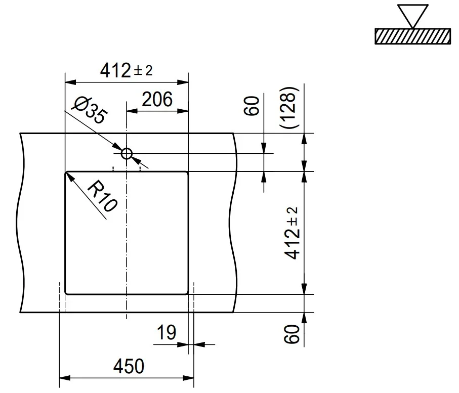 Изделие предназначено исключительно для установки вровень со столешницей, что создаёт эффект бесшовной поверхности и подчёркивает минималистичный характер интерьера. Такой монтаж придаёт пространству упорядоченность и визуальную лёгкость. Для установки требуется тумба шириной 45 см, а вырез в столешнице должен иметь размеры 45×20 см с радиусом закругления 1 см, что гарантирует точную и герметичную посадку.