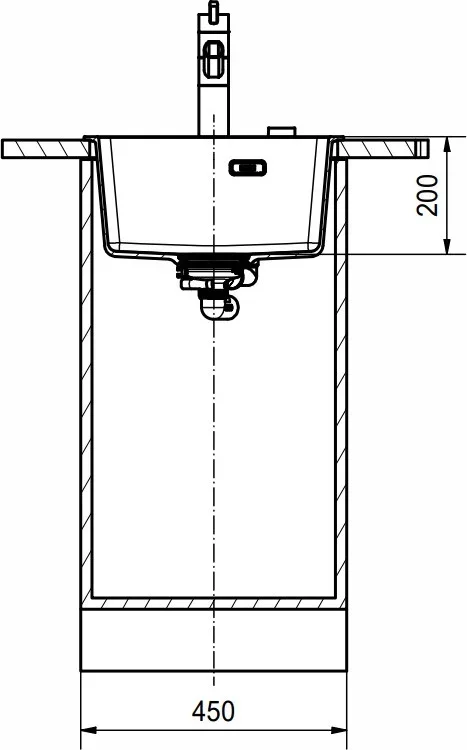 Модель предназначена для установки над столешницей, что упрощает монтаж и позволяет легко интегрировать её в уже существующую кухонную мебель. Такой способ крепления особенно востребован в модульных гарнитурах, на дачах или в интерьерах, где важна простота обслуживания и возможность быстрой замены. Для правильной установки требуется тумба шириной 45 см, а проём в столешнице должен составлять 42×48 см с радиусом закругления 1,5 см, что обеспечивает устойчивую и герметичную посадку.