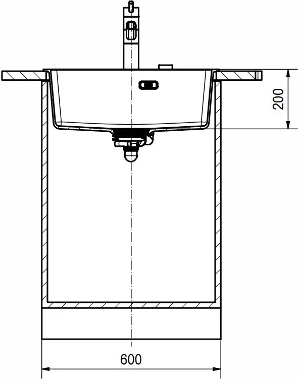 Глубина чаши продумана с учётом повседневных потребностей: она достаточно велика для удобного мытья посуды и обработки продуктов, при этом вода разбрызгивается минимально. Все углы аккуратно закруглены: внутренний радиус составляет 2 см, внешний — 1,5 см, как и у шаблона для выреза, что придаёт изделию мягкость форм и упрощает уход за поверхностью.