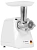 Корпус изготовлен из прочного пластика, устойчивого к ударам и простого в уходе. Белоснежное исполнение придаёт агрегату аккуратный, свежий вид, гармонично вписываясь в любой интерьер — от минималистичного до классического. Габариты — 28,5 см в высоту, 17 см в ширину и 25 см в глубину — продуманы с учётом экономии пространства, а вес всего 3,3 кг делает мясорубку особенно мобильной, не теряя при этом устойчивости во время работы.
