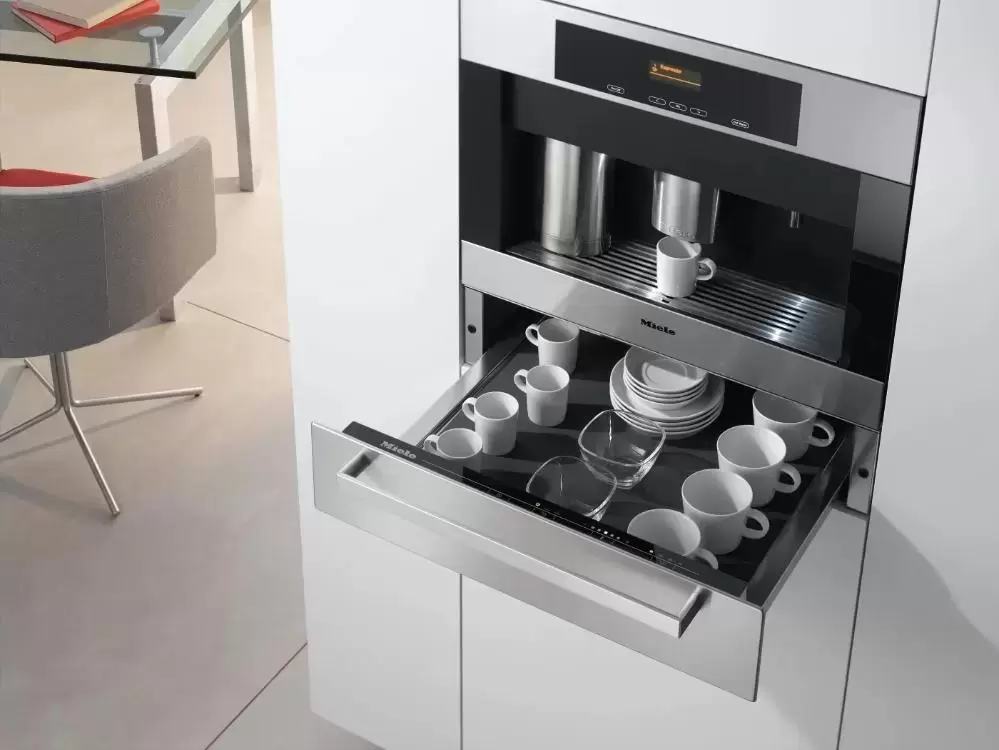 Сочетание серебристой ручки и стеклянной черной дверцы, придает встроенному электрическому подогревателю Miele Miele ESW 5080-14 BK эффектный внешний вид. В этой модели подогревателя умещается шесть стандартных комплектов посуды. Для подогревания используется три различных режима. Все режимы выбираются при помощи сенсорной панели управления, которая расположена на торцевой стороне дверцы.
