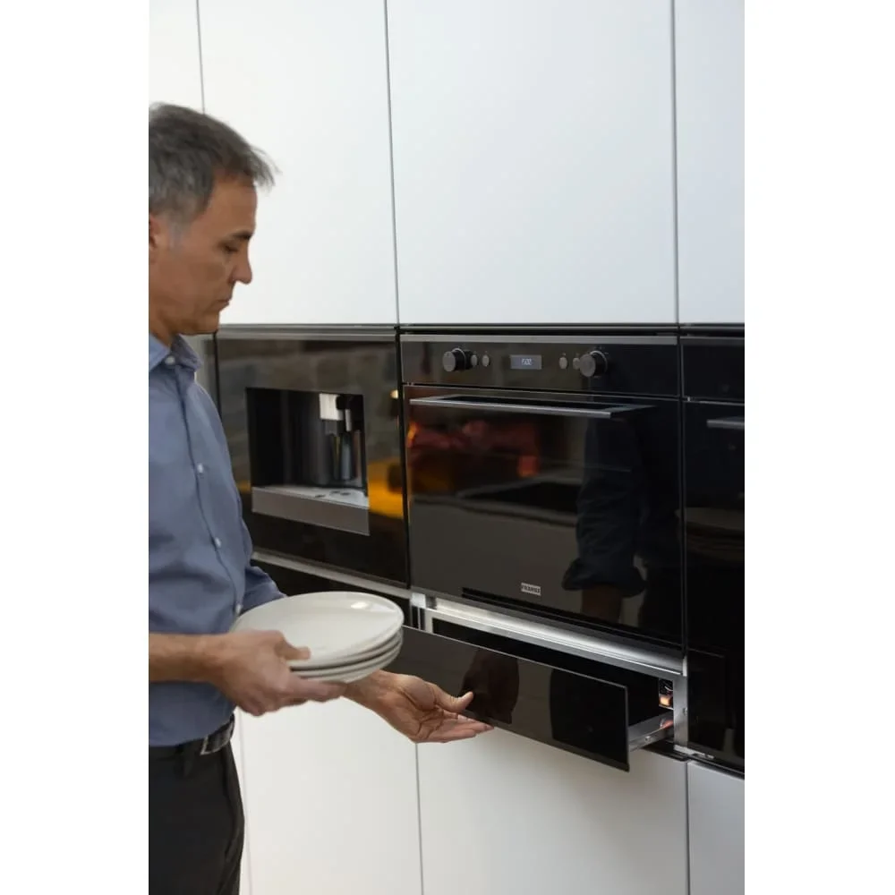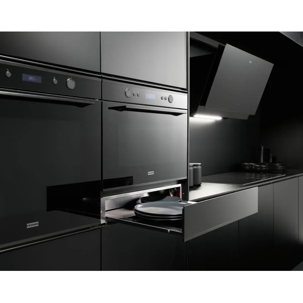 Подогреватель посуды Franke FMY 14 DRW BK сочетает компактные габариты и строгий черный дизайн Mythos, который легко впишется в современную кухню. Корпус высотой 13.3 см и размерами 59.5×56.6 см позволяет аккуратно встроить прибор в нишу 56×55 см, не теряя свободного пространства на рабочей поверхности. Матовый оттенок и минималистичная передняя панель создают благородный акцент рядом с комбинированной техникой и мебелью темных тонов.