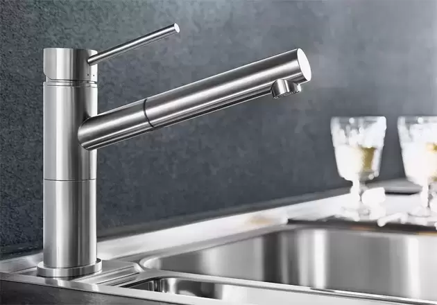 Модель Blanco Alta-S Compact устанавливается привычным способом: на бортик мойки или ванной в предназначенные для этого отверстия (они могут быть вырезаны производителями заранее, но если нет, при достаточной ширине можно добавить их самостоятельно). Гибкая подводка позволяет расположить сантехнику в любом удобном месте, при этом нужно учитывать несколько важных нюансов: для максимальной надежности лучше выбирать сильфонные рукава, нельзя использовать ее вместо стационарного водопровода, только как соединительный элемент для крана.