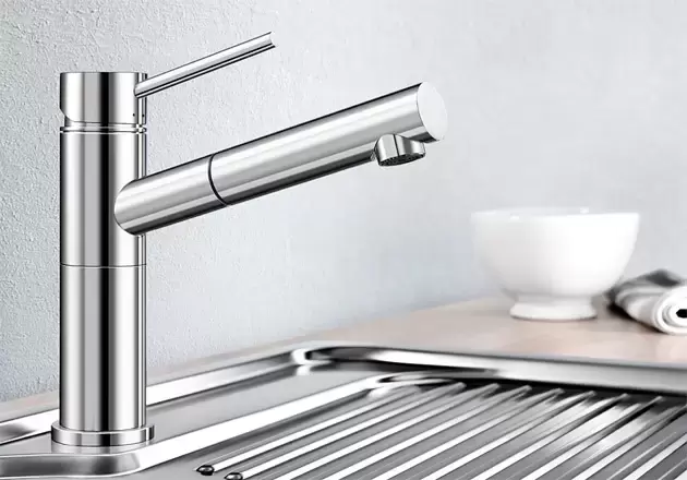 Специальная насадка позволяет выдвинуть излив как маленький шланг и направить струю в слишком высокую кастрюлю, которая не помещается под стационарным краном, на овощи в раковине, на загрязнения в неудобных уголках мойки, которые нужно удалить и т.д. Благодаря особой конструкции вы можете также направить воду из раковины в ванну или из одной чаши мойки в другую одним поворотом крана в нужную сторону. Дополнительная деталь, которая повышает комфорт использования, — аэратор. Он делает поток воды мягче, насыщая его кислородом, таким образом дополнительно уменьшая ее расход: объем струи увеличивается за счет воздуха, а не за счет повышения напора из водопровода.