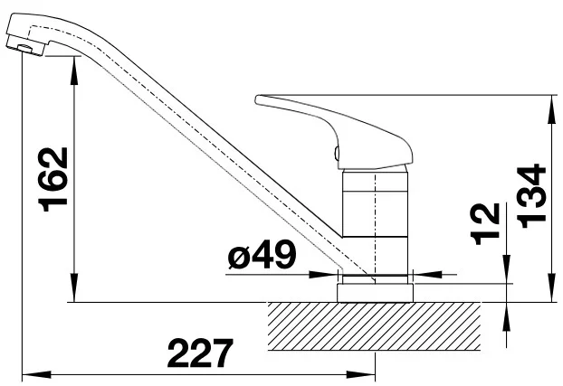 Высота излива 16,2 см и длина 22,7 см дают оптимальный запас пространства над мойкой. Такая геометрия удобна при наполнении высоких кастрюль и мойке крупной посуды. Угол поворота 360° расширяет рабочую зону и делает комфортной работу с двойной мойкой. Благодаря повороту можно легко направлять струю в любую сторону без лишних усилий. Складная конструкция позволяет опускать излив при необходимости. Это особенно удобно, если кран устанавливается перед открывающимся окном. Минимальное расстояние до створки окна 3 см позволяет уверенно закрывать или открывать окно, не мешая сантехнике.